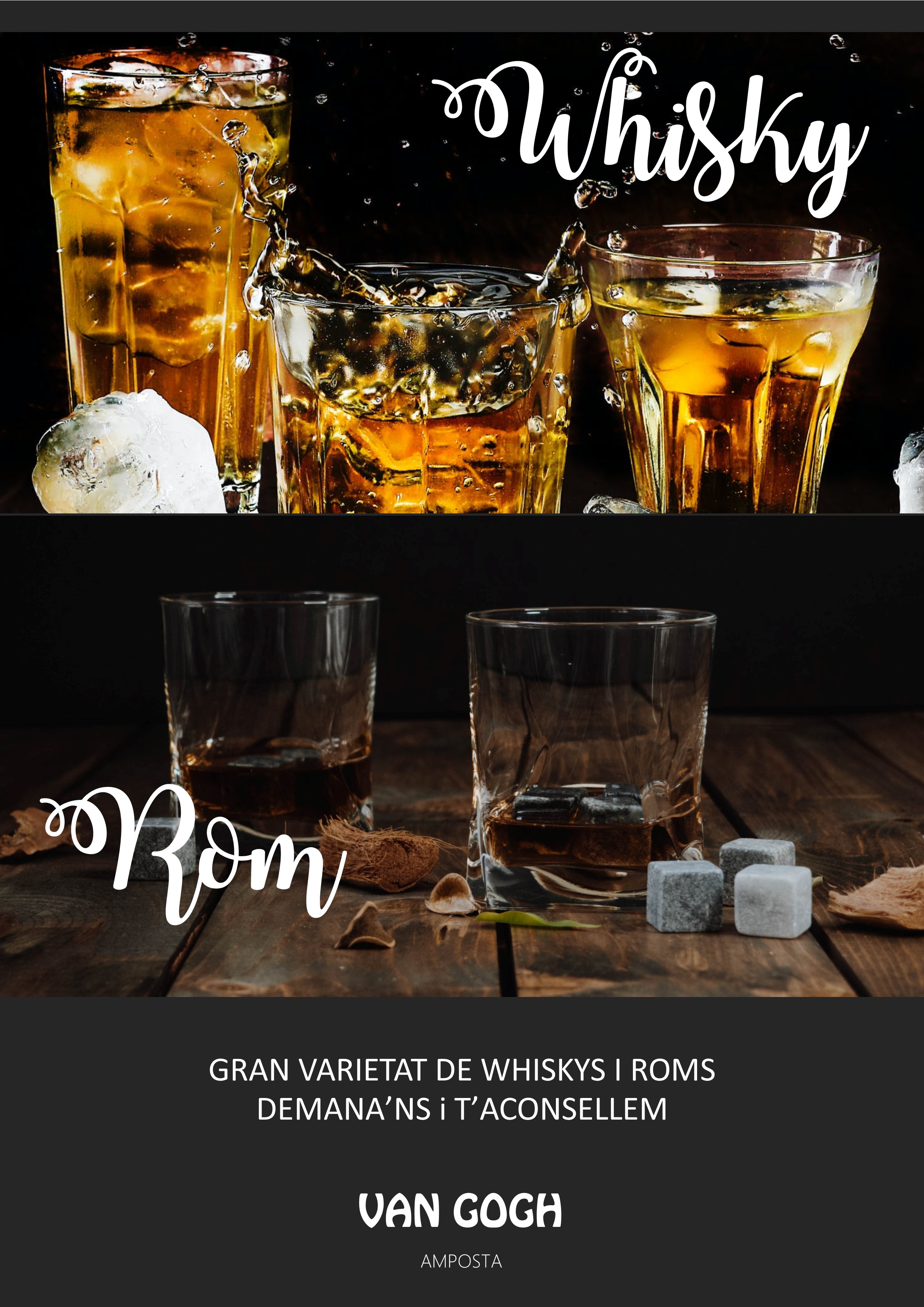 Un a partir dels cereals i l'altre a partir del raïm, el Whisky és a la cervesa com el brandy és al vi. Aquí podem trobar tot un assortiment de Whiskies de malta escocesos, Whiskeys irlandesos, Whiskies canadencs, Bourbons, Conyacs francesos i Brandies espanyols, aquests que en temps de la pesseta eren "com els estrangers, però a preus espanyols".